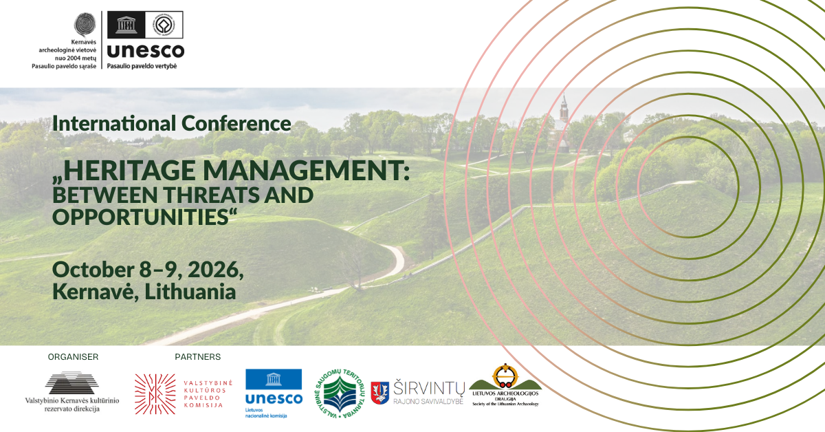 On October 8–9, 2026, the heritage community is invited to gather at the Kernavė Archaeological Site, where the Administration of the Kernavė State Cultural Reserve, together with its partners, is organizing an international conference “Heritage management: between threats and opportunities.”