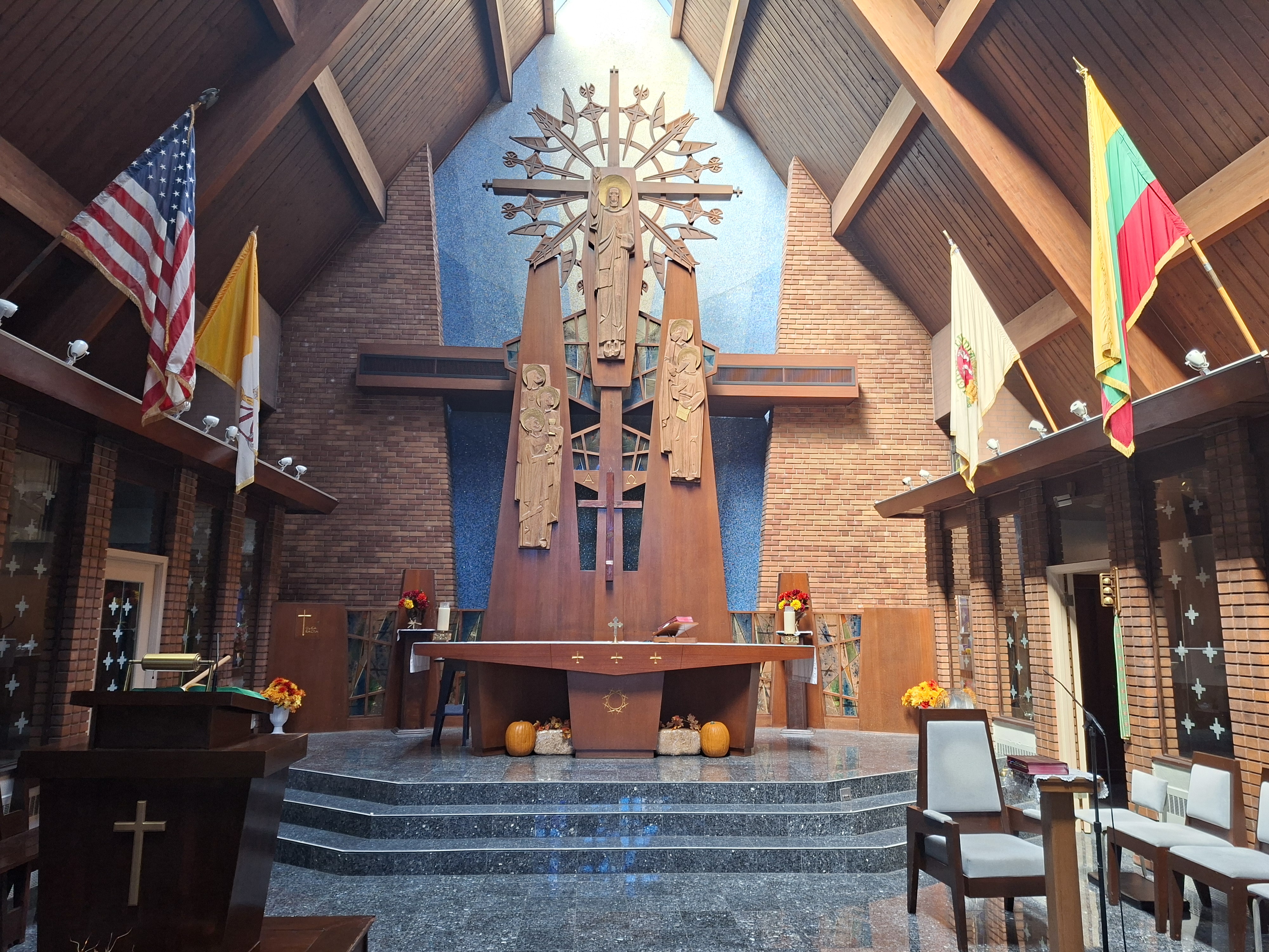 Mulokas šioje bažnyčioje įžvelgė reikšmingą sakralinės architektūros posūkį, kuriame buvo atsisakyta bažnyčioms būdingo „arkinio perdengimo būdo, taip paliekant praeityje gražius įprastus stilius“[2]. Viena vertus „A“ forma, kaip maldai sudėtų rankų motyvo refleksija, 20 a. antroje pusėje buvo dažna komponuojant sakralinių pastatų struktūrą. Kita vertus, J. Mulokui šis pasirinkimas turėjo ir kitą, simbolinę, prasmę, nes priminė lietuviško klojimo siluetą. Vis tik, ryškiausias lietuviškas elementas – bokštas, pastatytas iš keturių palinkusių kolonų, užbaigiamas lietuviško koplytstulpio formos viršūne.